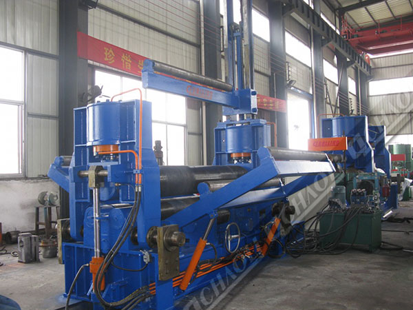 具備板端預彎功能,通過(guò)上輥水平移動(dòng),使上輥相對于下輥呈非對稱(chēng)位置來(lái)實(shí)現板端預彎。